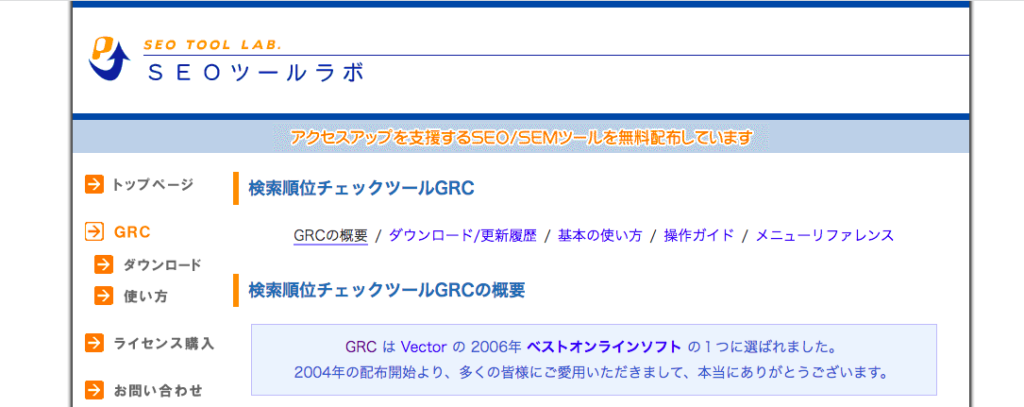 GRCは、シンプルかつ軽快に動作する検索順位チェックツールで、国内SEO担当者の間で根強い人気を誇ります。