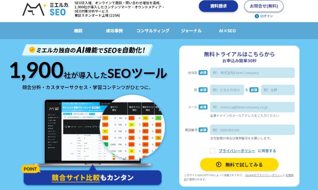 MIERUCA(ミエルカ)は、コンテンツマーケティングを軸にアクセス解析を行える国産のSEOツールです。
