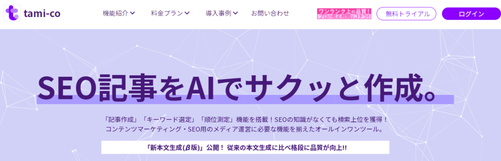 特に「検索意図の整理」や「構成案の自動生成」に強みを持っており、効率的に記事の骨子を作成できる点が特徴です。